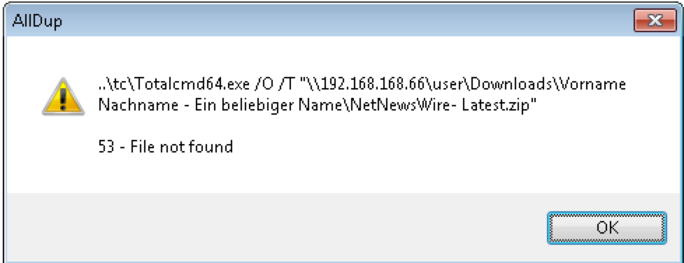 öffnet der Explorer die in Alldup ausgewählte Datei und nicht den Pfad.