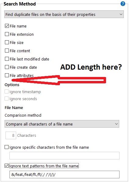 I wonder though is it possible to add the options below when we check Lenght and filenames?
