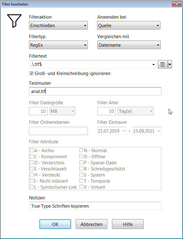 Administrator wrote: 15 Sep 2021, 18:22Die kommende Version 4 von AllSync unterstützt Regular Expressions (RegEx) für Filter.