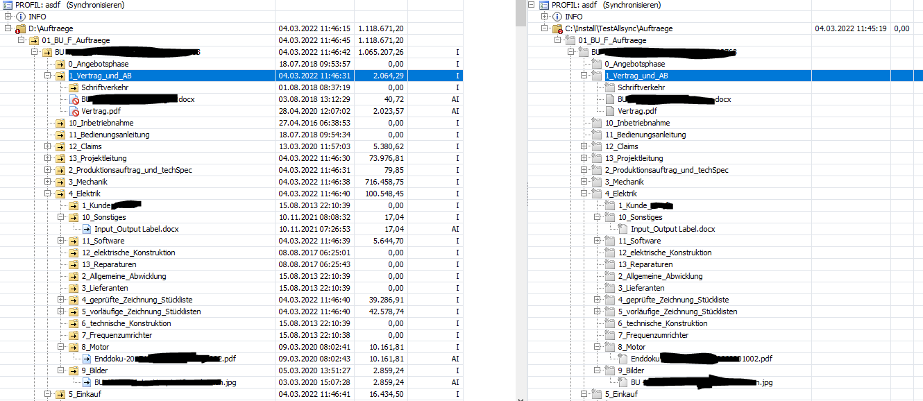 Quellordner ist: "\\JASTRAM-ADFS\Auftraege\" und Zielordner "C:\Auftraege\". Meine Profiltests führe ich lokal anhand von zwei Test Ordnern auf Laufwerk C: und D: durch, wie auf dem Screenshot oben zu sehen, da ich sonst jedes Mal einige Minuten für die Kopiervorschau warten muss. Die Filtereinstellungen funktionieren aber weder mit dem richtigen Pfad auf dem Server als auch lokal.