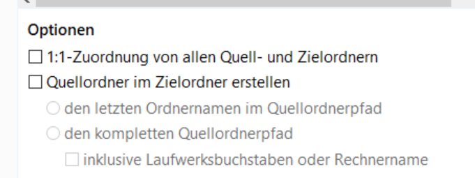 Die Frage bezieht sich auf die Ordneroptionen der Quell- und Zielordnerliste, siehe Screenshot.