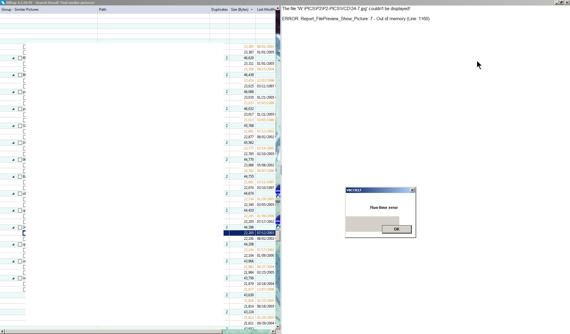 10/21/2023 09:39:24 AM - Found 1,256 duplicates with a total of 122.78 MB inside folder 'W:\PICS\P2'