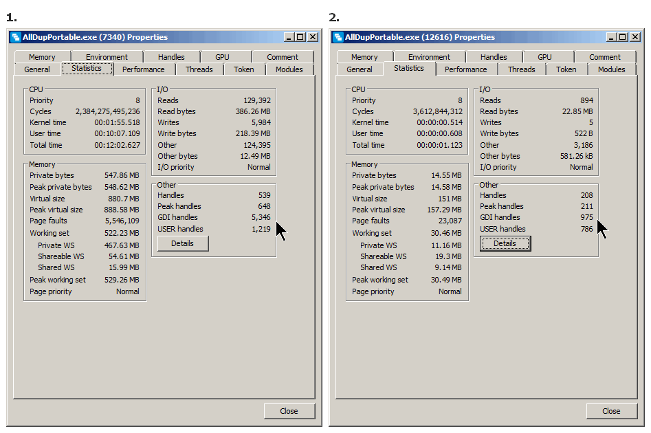 - GDI handle usage ~same as having deleted all pre-existing directories