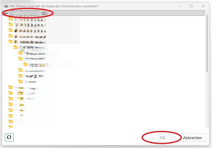Früher habe ich mit der rechten Maustaste die Auswahl der Ordnerstruktur aufgerufen, bin dann im Ordner-Baum nach oben gegangen und habe auf OK gedrückt, um alle Suchergebnisse des gesamten Baums auszuwählen. Jetzt ist der OK-Button ausgrgraut und ich kann nur mehr Ordner für Ordner auswählen.