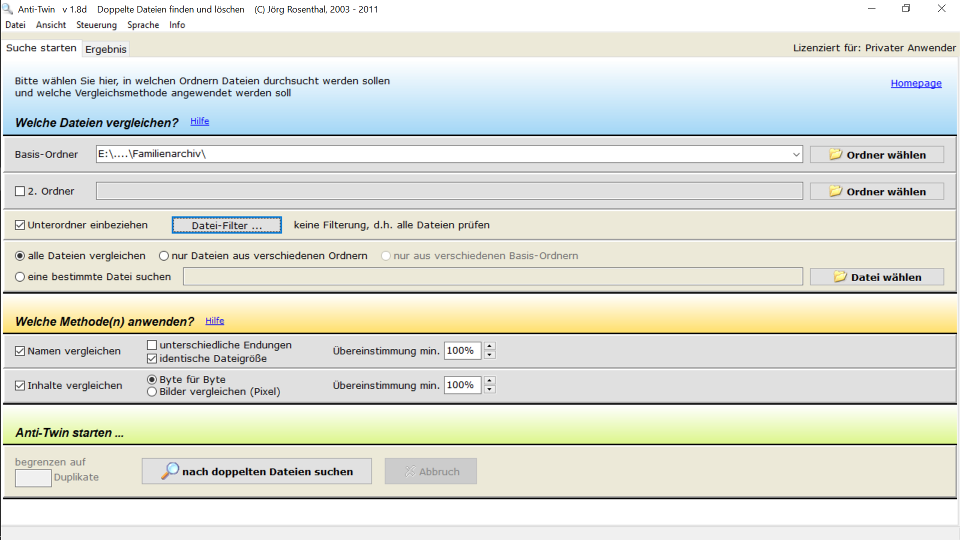 1) Ich habe das Quellverzeichnis "Familienarchiv" zunächst von Duplikaten entfernt (mit Anti-Twin).