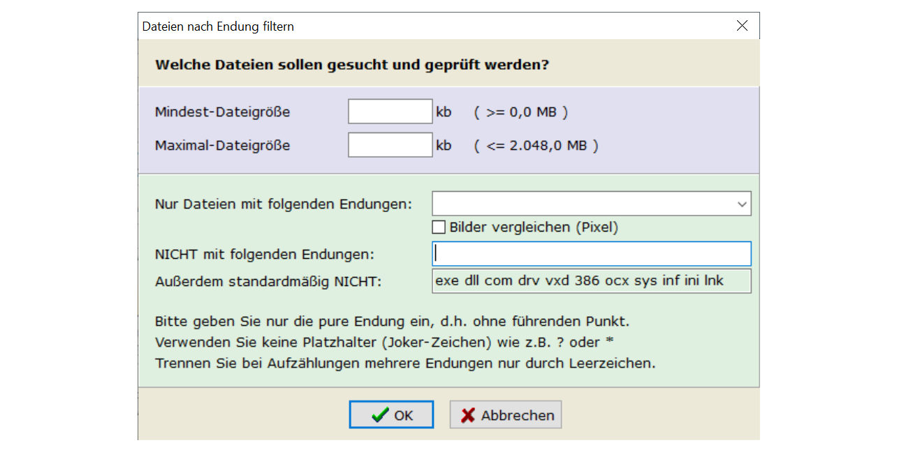 2) unzählige vermeintliche "Dateien ohne Duplikate" (was nicht sein kann, da sich in beiden Quellverzeichnissen die Duplikate tatsächlich finden lassen)