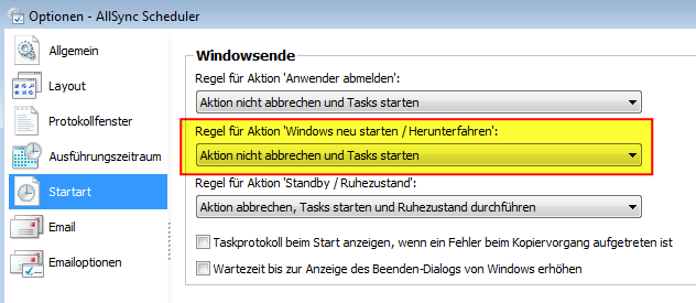 Zeitplan: Startart: Windowsende, Anmelder abmelden, Windows neu starten/herunterfahren angehakt.