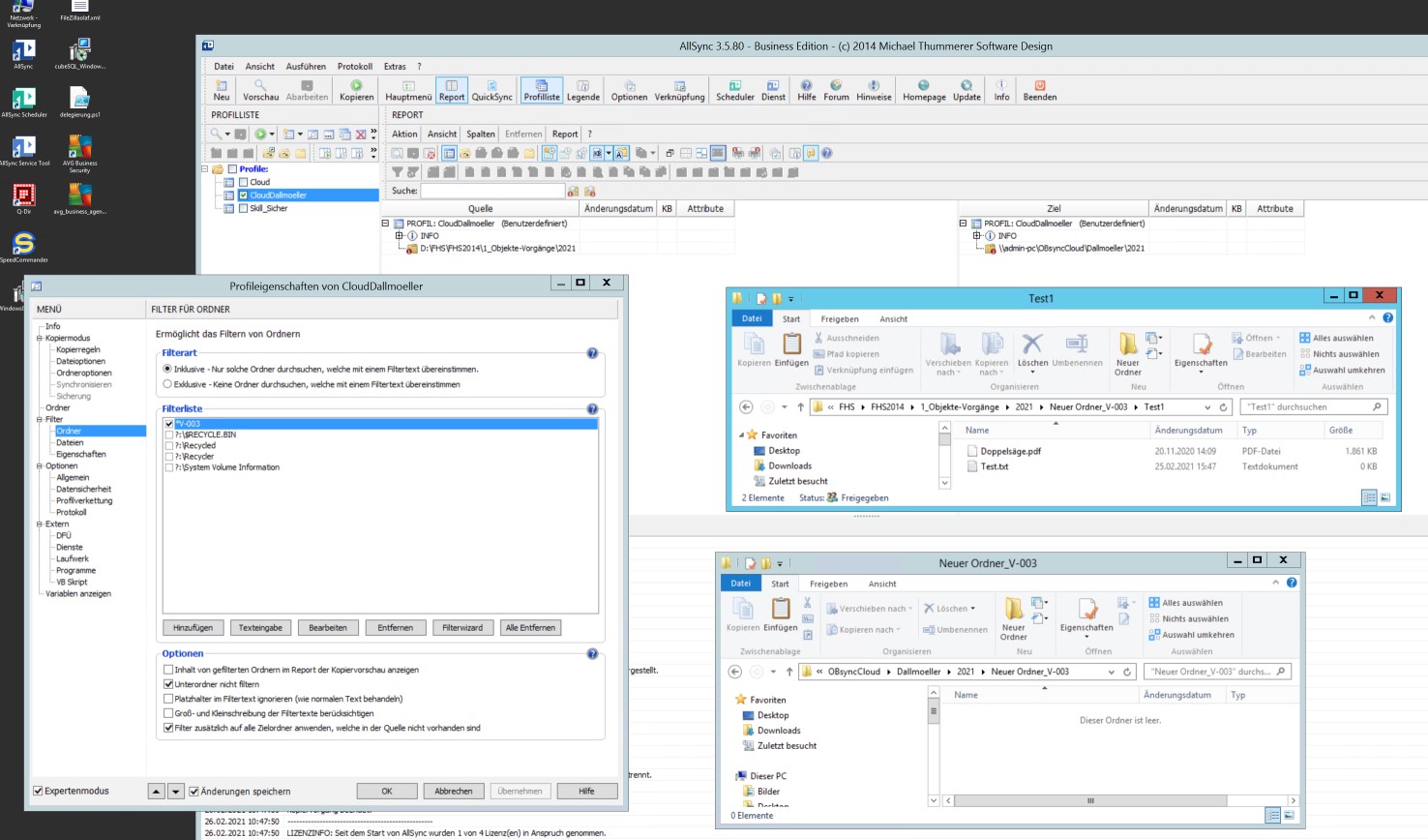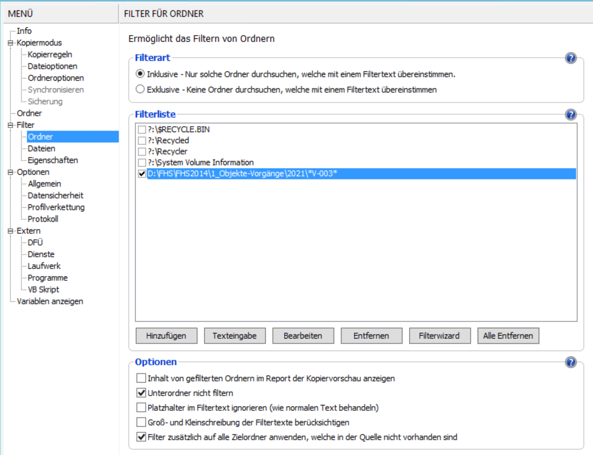 Der Ordnerfilter greift richtig und kopiert nur den Ordner mit dem Filterkriterium im Ordernamen.