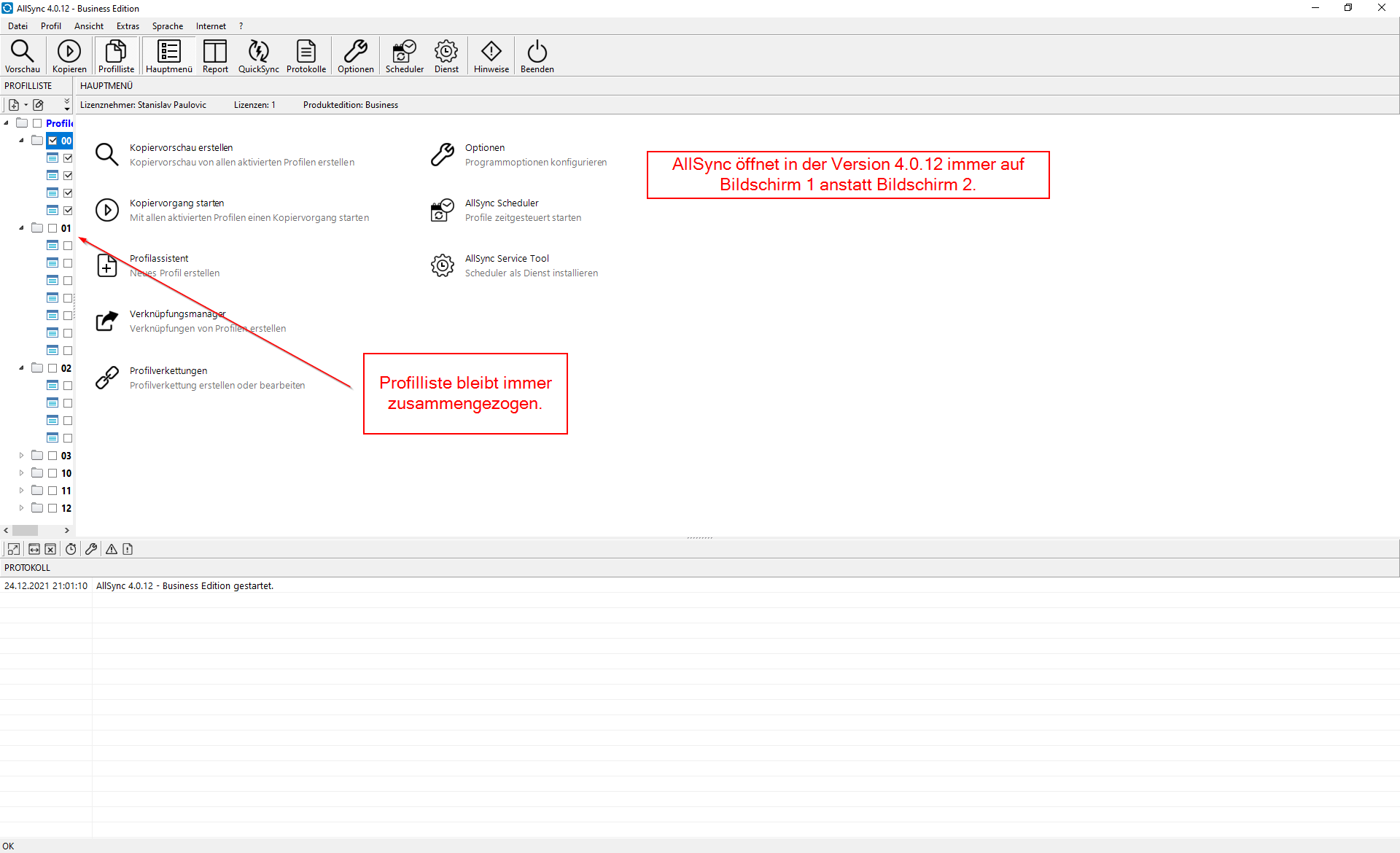 Des Weiteren wird AllSync immer auf dem Hauptmonitor gestartet, obwohl vorher das Programm ständig auf einem 2. Bildschirm starten konnte.
