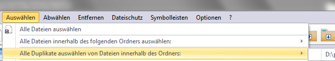 Die Funktion "Alle Duplikate auswählen von Dateien innerhalb des Ordners: <irgendeinordner innerhalb einer tiefen Struktur>" funktioniert nicht, oder ich verstehe nicht die Idee dahinter.