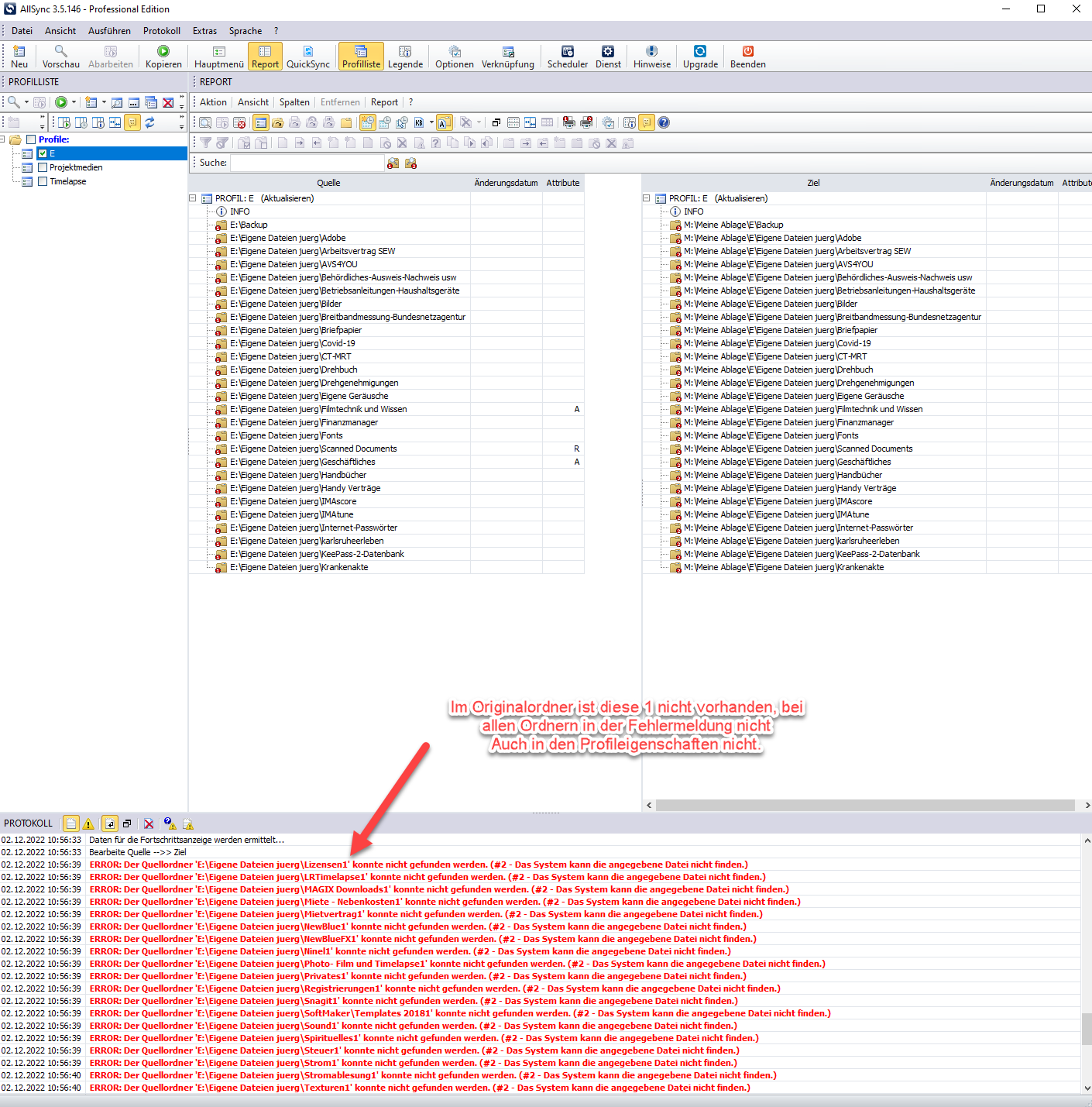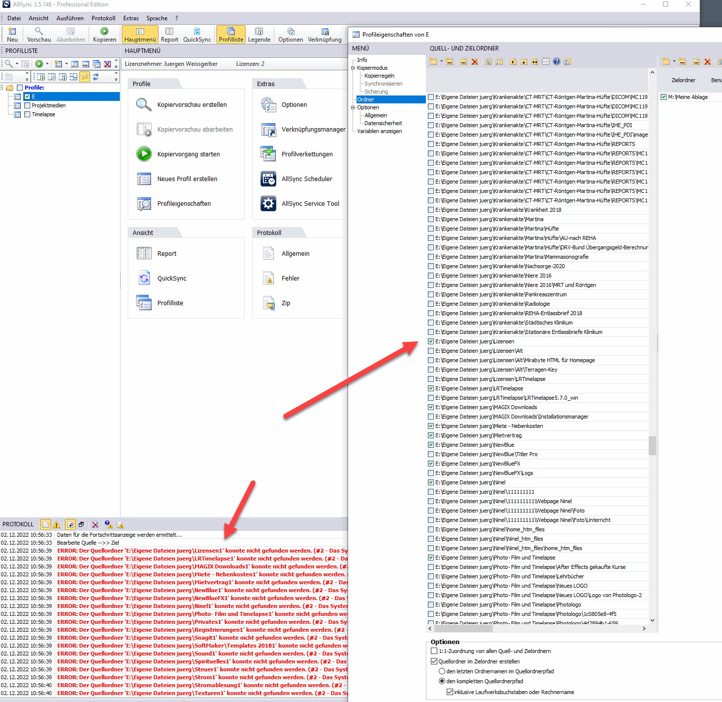 ich bekomme folgende Fehlermeldungen: Error der Quellordner Lizensen1 konnte nicht gefunden werden.