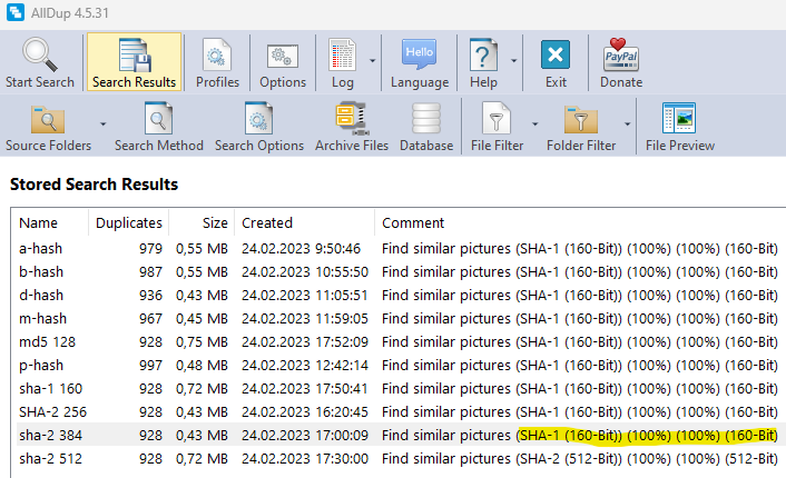 Using AllDup ver. 4.5.31, looks like found bug - when opening saved search result and save them before closure their original Comment (which contains info about options used for search) became replaced by info from current set of options selected for search.
